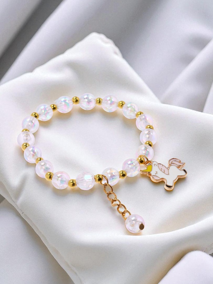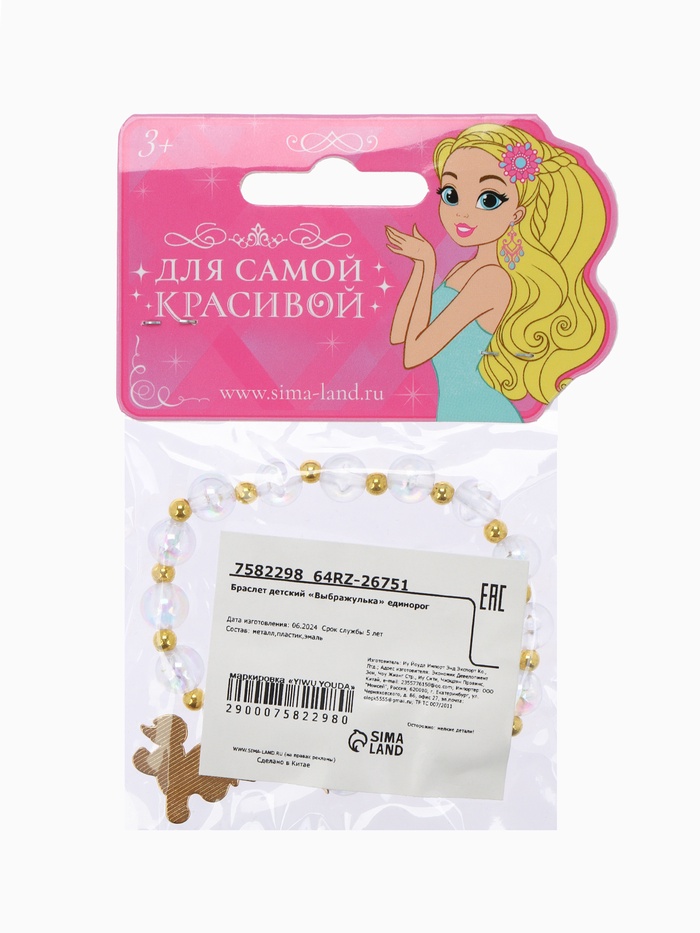 Этот браслет выполнен с использованием безопасных материалов, что делает его идеально подходящим для детей. Дизайн с единорогом станет любимым украшением для любой девочки, добавляя в её образ магии и волшебства. Браслет легко надевается и снимается, благодаря чему подходит для детей разного возраста. Розовый цвет и золотые детали делают его универсальным для сочетания с различными нарядами.