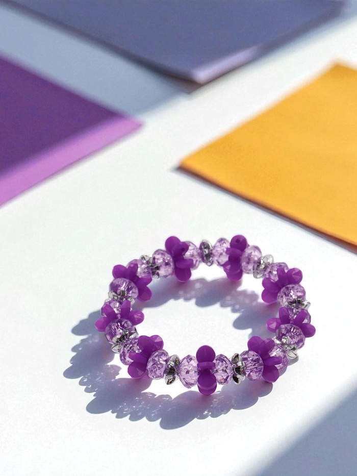 Детский фиолетовый браслет из бусин на пластиковой основе станет ярким дополнением образа девочки. Размер 7 см подходит для комфортного ношения, а отсутствие застёжки обеспечивает простоту использования и удобство.