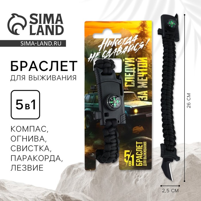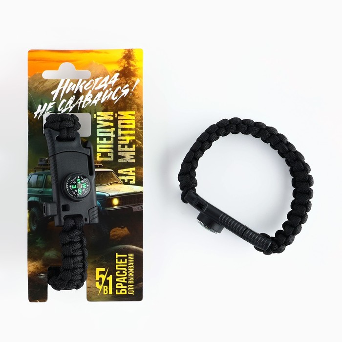 Браслет для выживания "Никогда не сдавайся", 26 х 2.3 см