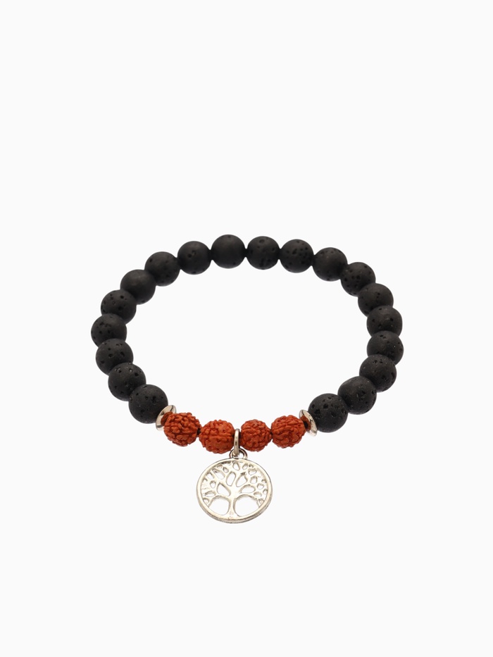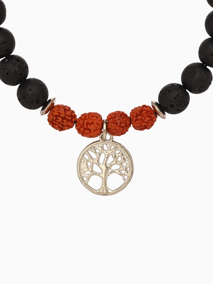 Браслет "Древо жизни" лава, рудракша, длина 18 см, цв. чёрный, коричневый