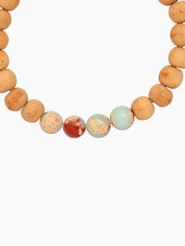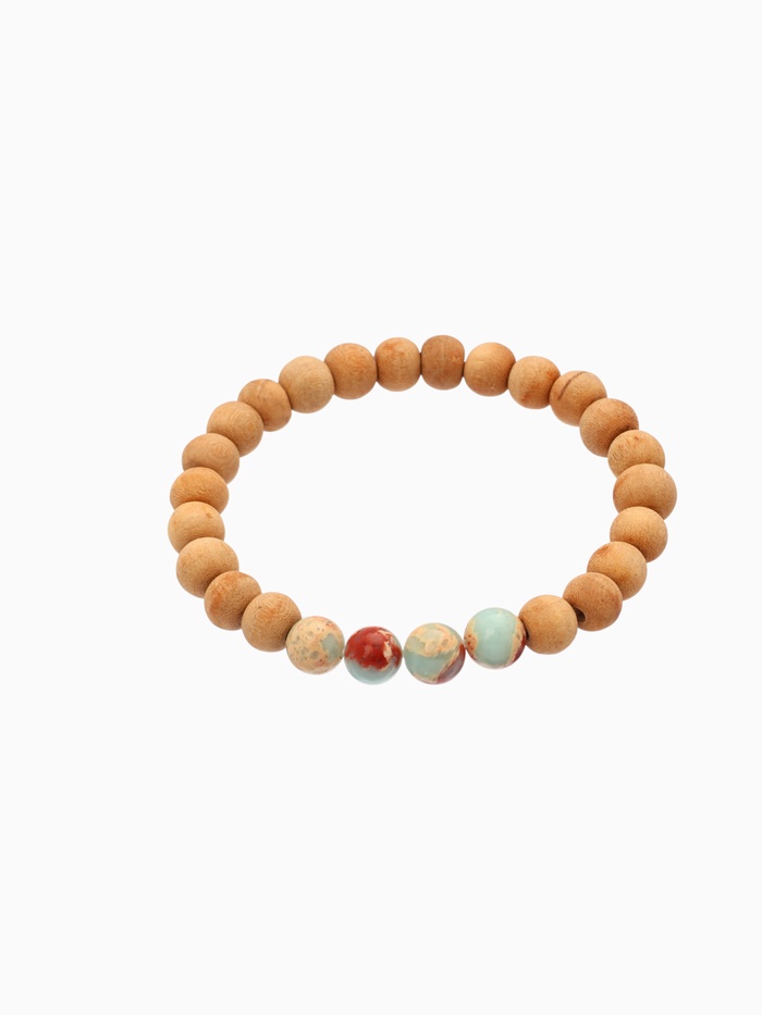 Браслет из сандалового дерева с агатом, длина 18 см, цв. красный