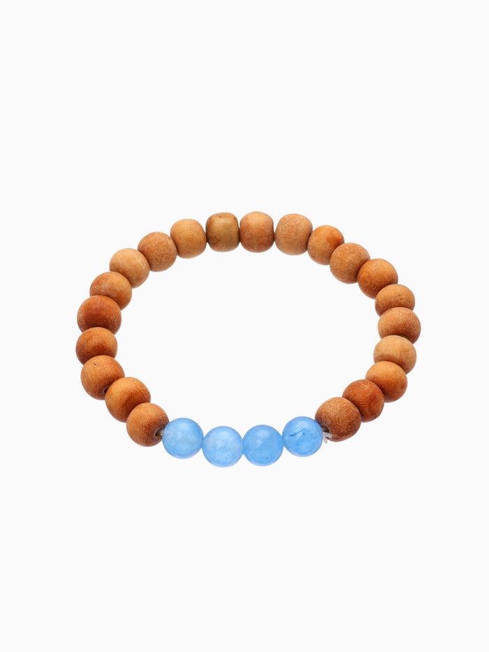 Браслет из сандалового дерева с агатом, длина 18 см, цв. синий
