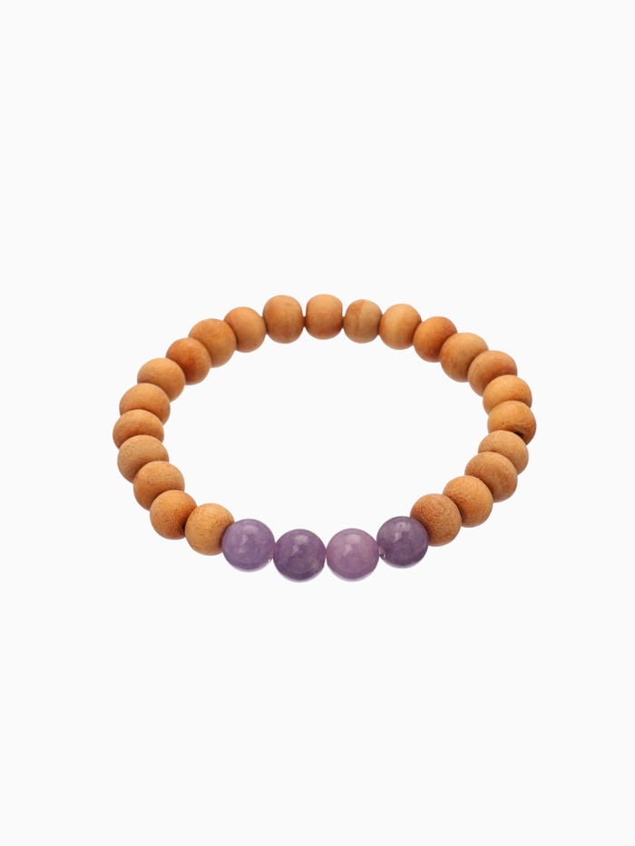Браслет из сандалового дерева с агатом, длина 18 см, цв. сиреневый