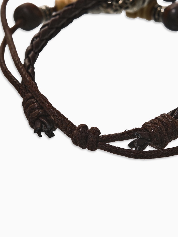 - Разнообразие вставок: металл, текстиль и дерево придают браслету оригинальность и текстурное богатство.