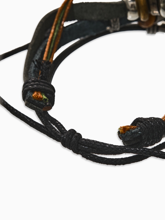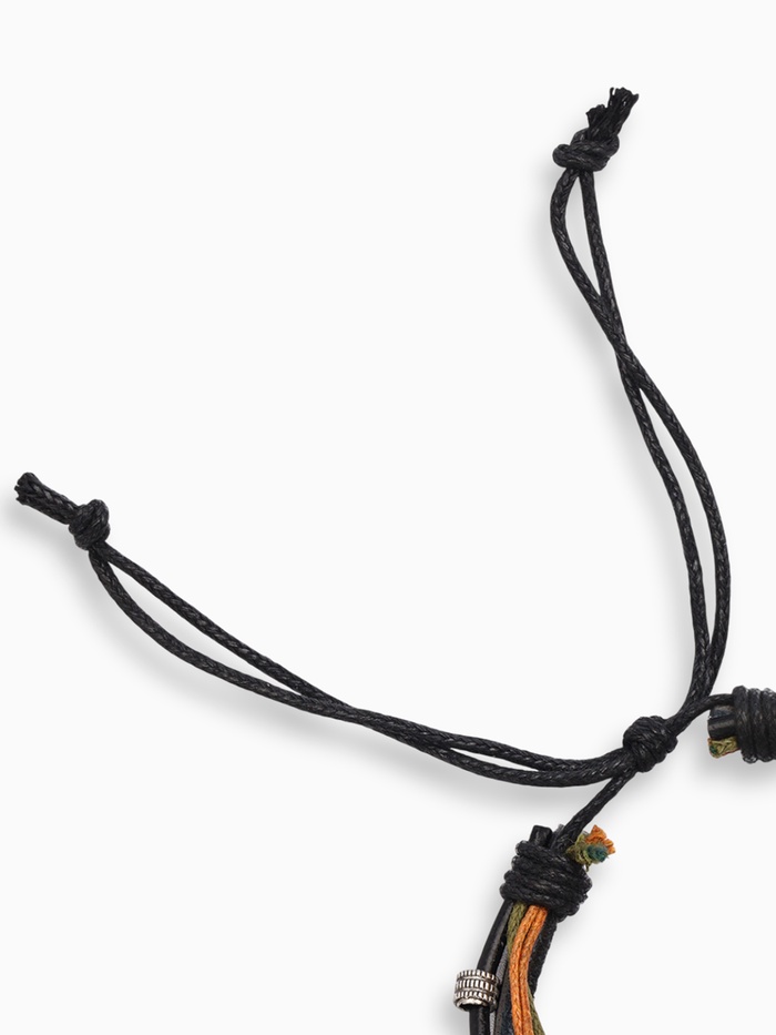 Регулируемая затяжка обеспечивает надёжную и комфортную посадку на запястье, а чернёное серебро в элементах фурнитуры добавляет изделию благородства и долговечности. Этот браслет станет универсальным украшением, подходящим как для повседневного образа, так и для особых случаев.