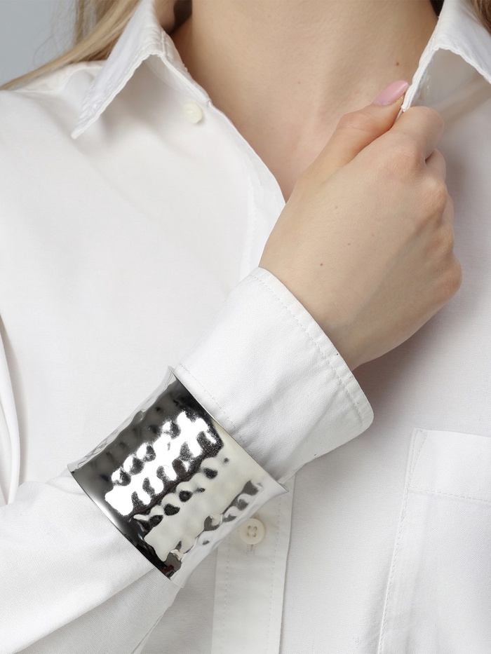 Браслет манжета «Изогнутый», металл, цвет серебро