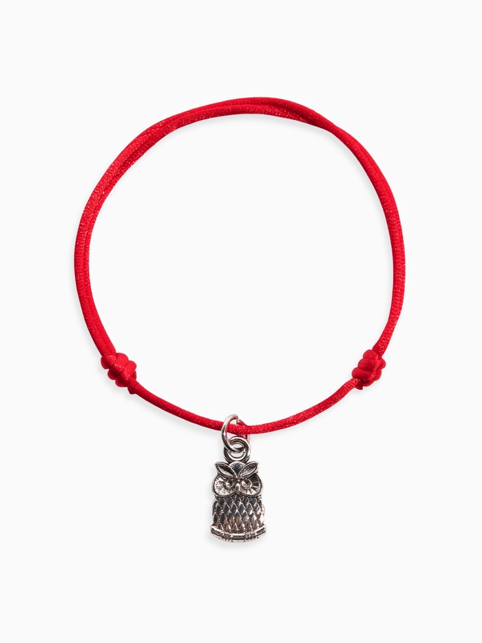 Браслет-оберег «Красная нить» с подвеской в виде совы, длиной 20 см, выполнен с элементами из чернёного серебра. Сова символизирует мудрость, знания и привлечение денег. Этот браслет станет талисманом финансового успеха и профессионального роста.
