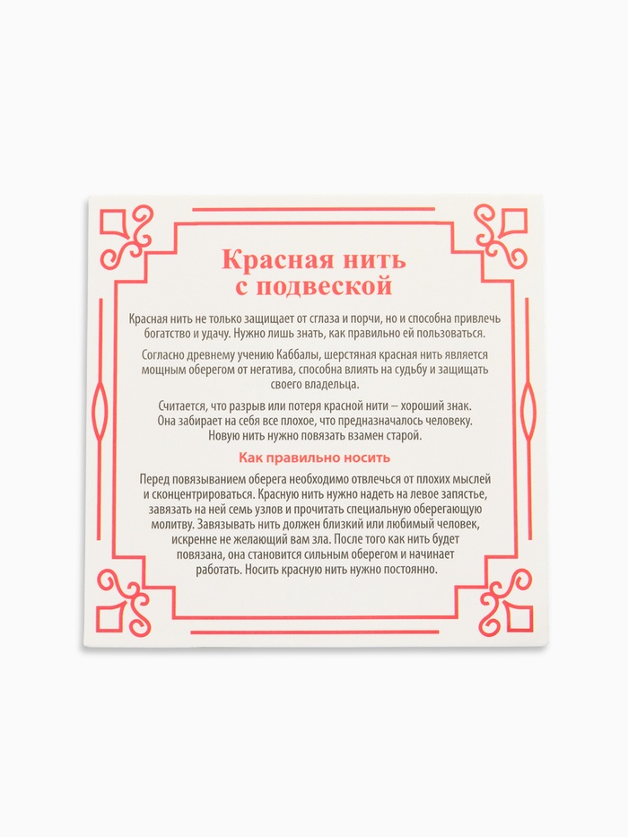 Этот браслет с красной нитью — не просто стильный аксессуар, а мощный оберег, символизирующий приток изобилия и благополучия. Текстильная основа длиной 35 см позволяет удобно носить браслет на запястье любого размера, а отсутствие застёжки делает его максимально комфортным и практичным в повседневной жизни.