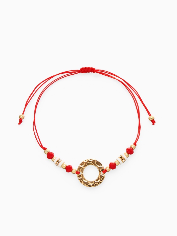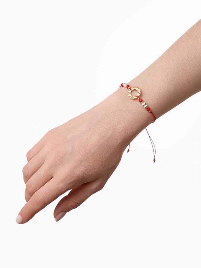 Погрузитесь в мир стиля и защиты с удивительным браслетом, который станет вашим личным оберегом. Этот аксессуар с красной нитью и бело-красным кольцом в золотой отделке не только привносит яркие акценты в ваш образ, но и символизирует защиту от негативных энергий, наполняя вашу жизнь положительными эмоциями.