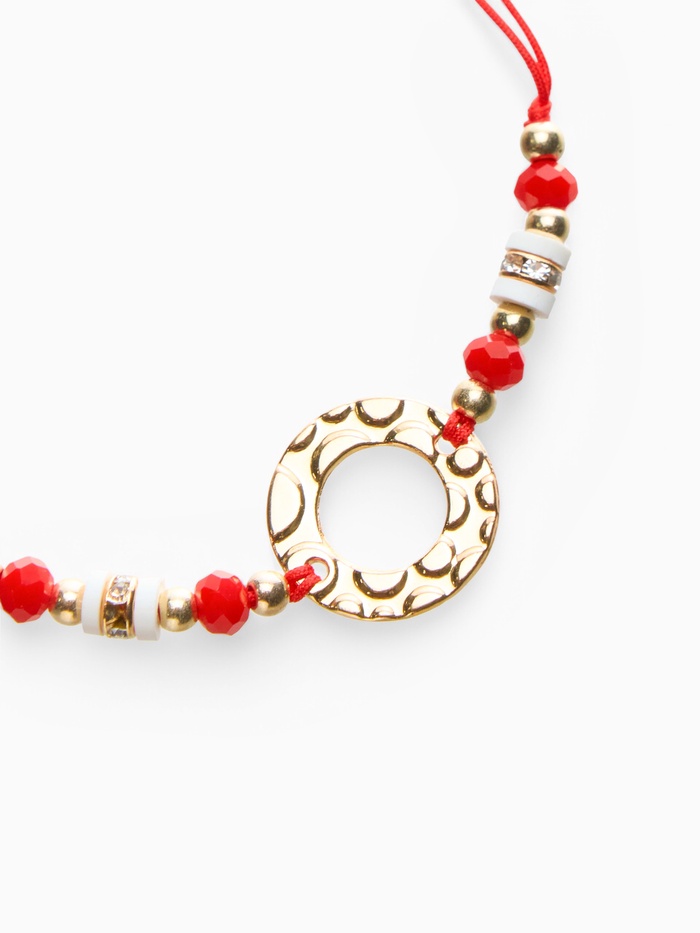- Элегантный дизайн: бело-красные оттенки и золотая отделка придают браслету стильный вид, который легко сочетать с различными образами.