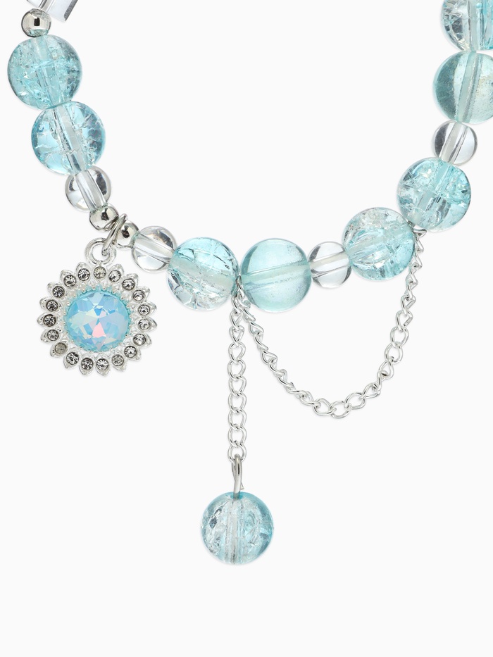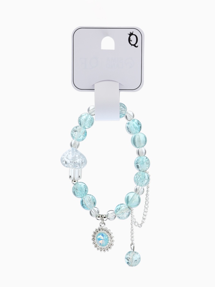 Браслет с подвесками "Сахарный" диск, сердечко, шар №10, цвет бело-голубой в серебре