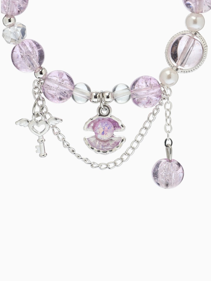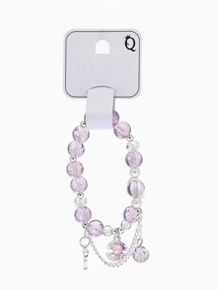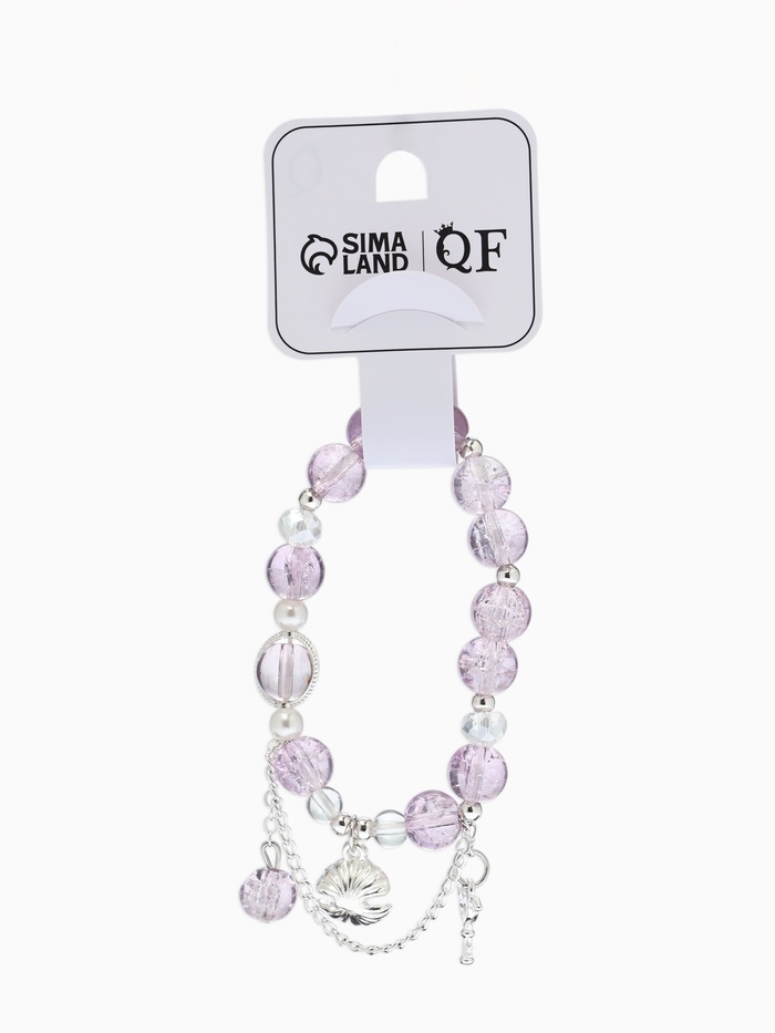 Браслет с подвесками "Сахарный" ракушка, шар №10/8, цвет сиреневый в серебре
