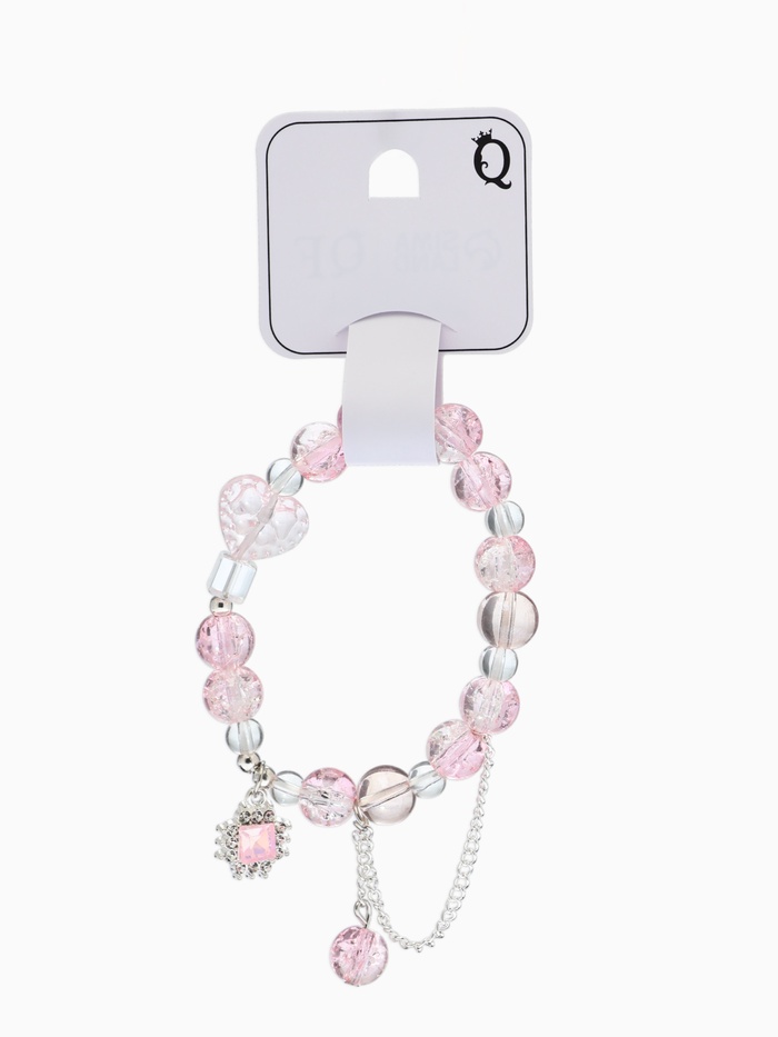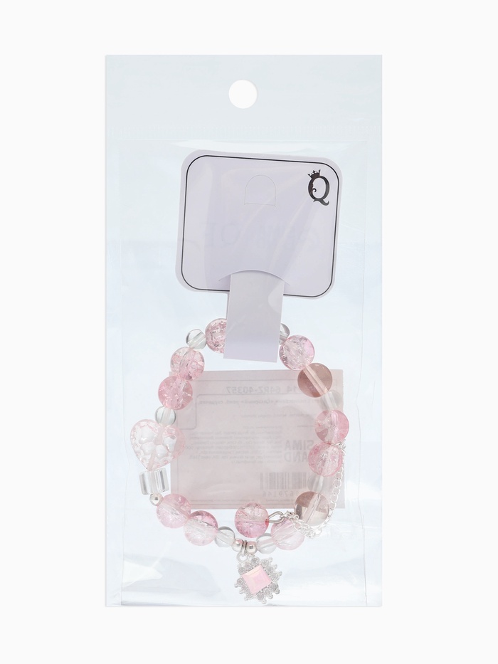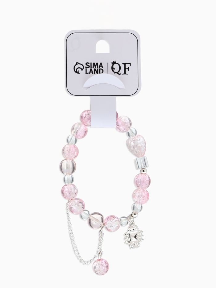 Браслет с подвесками "Сахарный" ромб, сердечко, шар №10, цвет бело-розовый в серебре