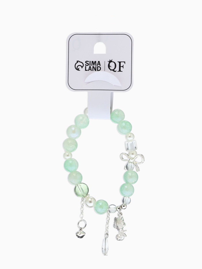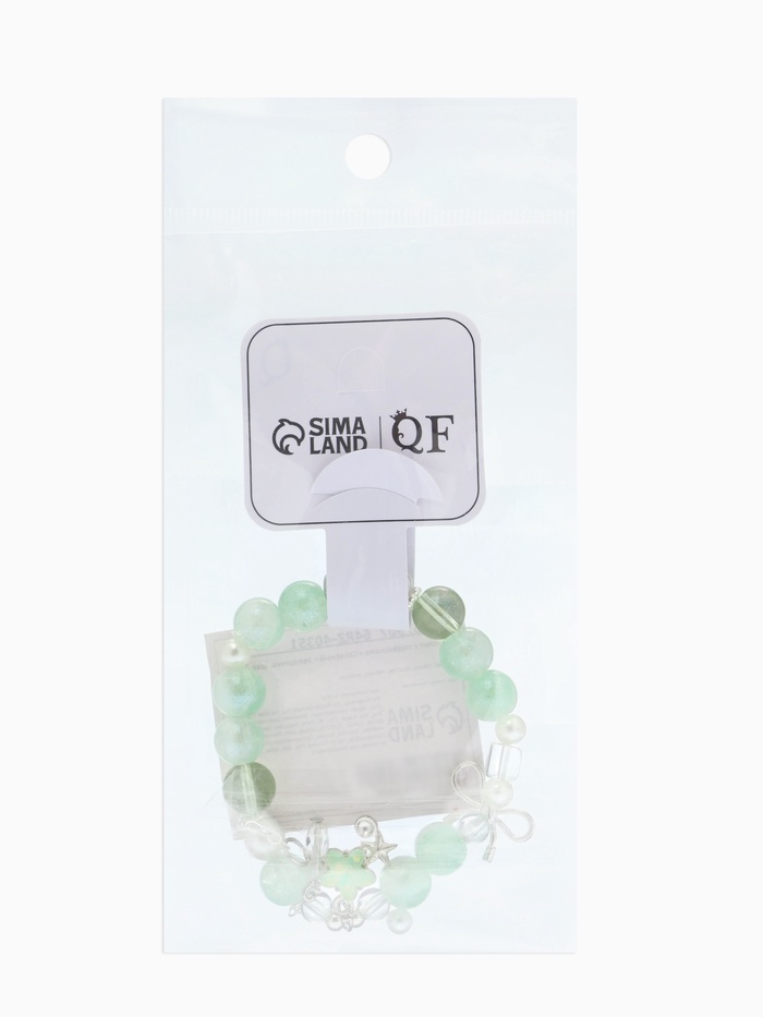 Браслет с подвесками "Сахарный" звёздочка, шар №10/8, цвет бело-светло-зелёный в серебре