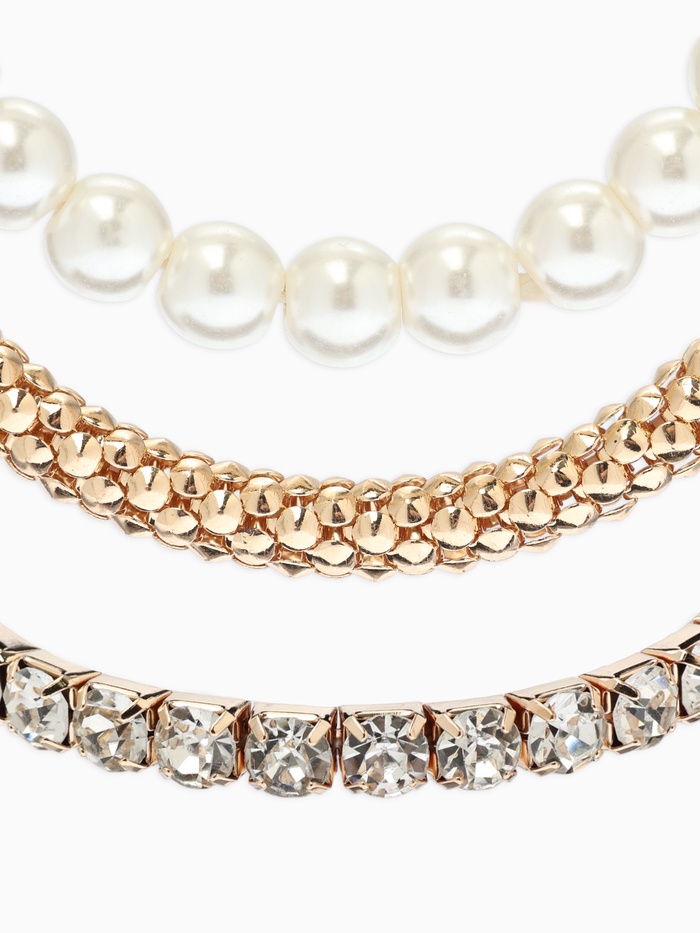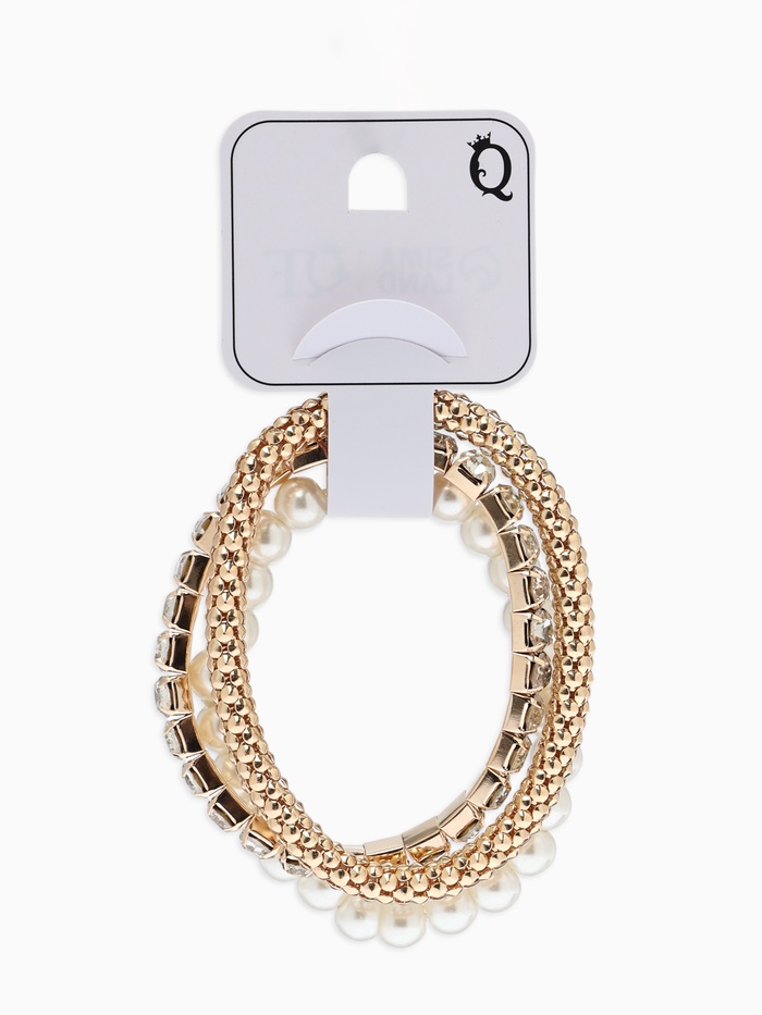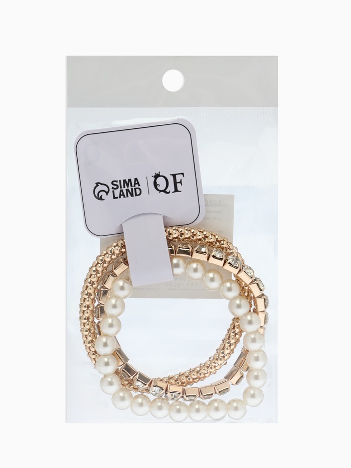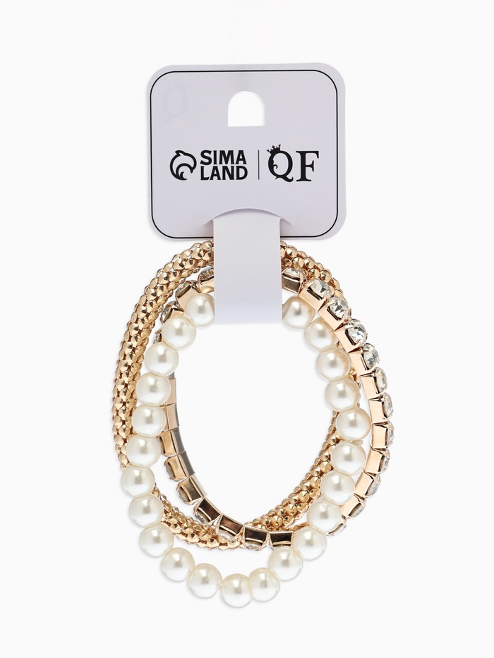 Браслет "Стиль" (набор 3шт) шар №8, со стразинками, тянется, цвет белый в золоте