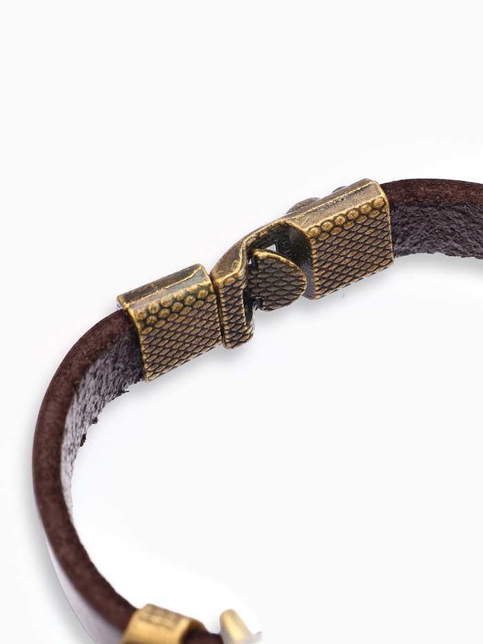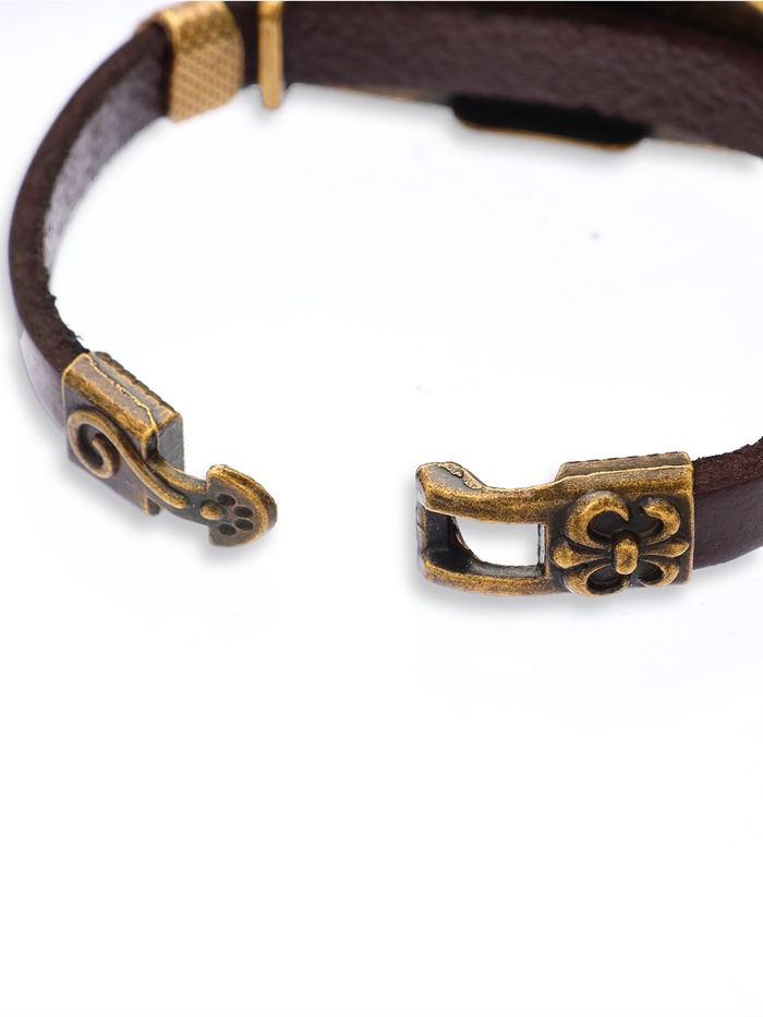 Браслет унисекс «Атлант» с изображением скорпиона — это уникальное сочетание стиля и символики, которое подчеркнёт вашу индивидуальность и внутреннюю силу. Его насыщенный коричневый цвет с чернёным золотом создаёт гармоничный и элегантный образ, идеально подходящий как для повседневных, так и для особых случаев. Длина 22 см обеспечивает комфортное ношение, а Т-образная застёжка гарантирует надёжную фиксацию без лишних усилий.