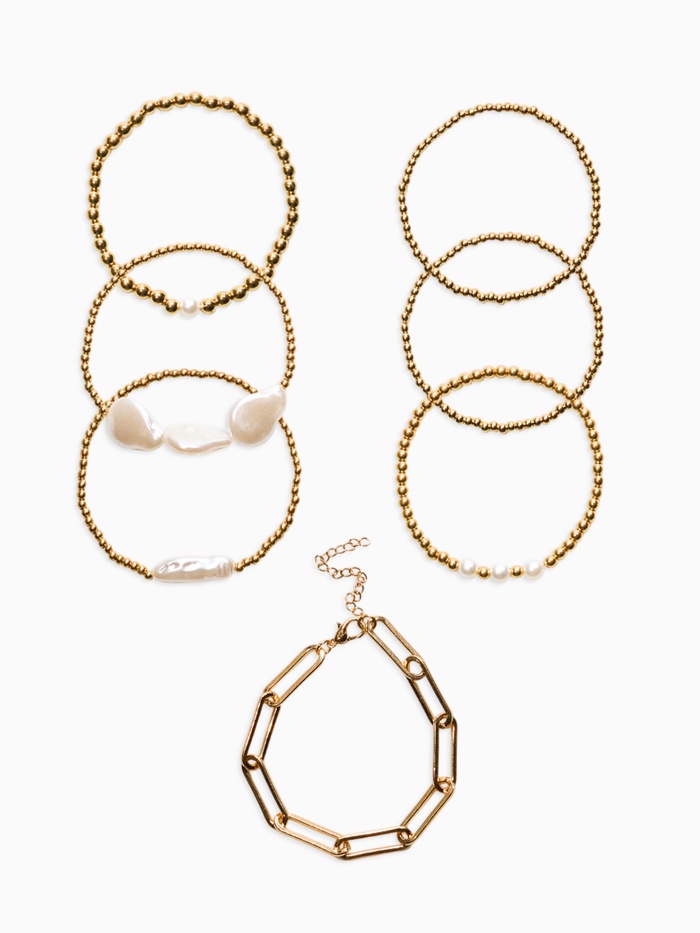 Браслет жемчуг "Барочный с цепями" (набор 7шт) , цвет белый в золоте