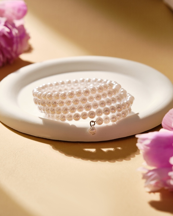 Жемчужный браслет — это классическое и элегантное украшение, выполненное из высококачественных пластиковых жемчужин, которое добавляет утонченности любому образу. Этот браслет прекрасно подходит для различных поводов, включая свадебные церемонии, вечерние мероприятия и деловые встречи. Его универсальный дизайн легко сочетать с другими аксессуарами, делая его идеальным выбором как для торжественных случаев, так и для повседневной носки.
