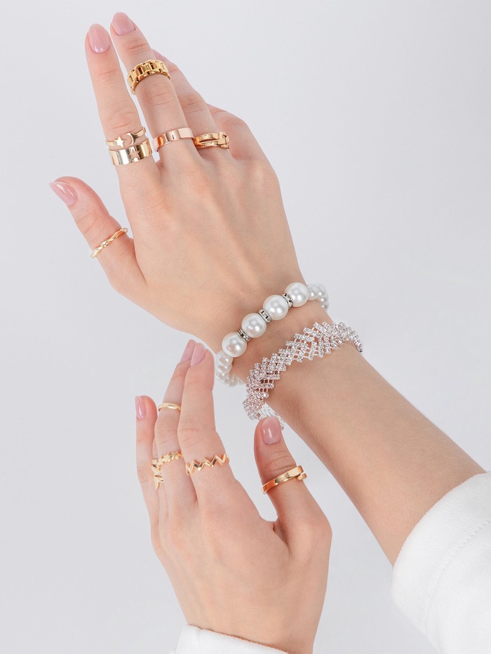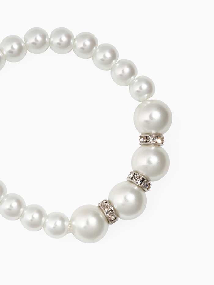 Ищете аксессуар, который сможет дополнить свадебный образ невесты или праздничное платье юной девушки? Обратите внимание на великолепный жемчужный браслет «Невеста», состоящий из четырёх отдельных частей. Украшенный белыми перламутровыми бусинками разного диаметра (от 0,8 до 1,2 см) и сверкающими стразами, он создаст иллюзию настоящей драгоценности, подарив дополнительное очарование любому наряду.
