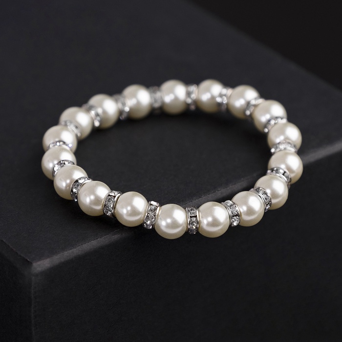 - Сияние и блеск: белый цвет вставок из жемчуга и страз придаёт браслету великолепный вид, гармонируя с любым нарядом.