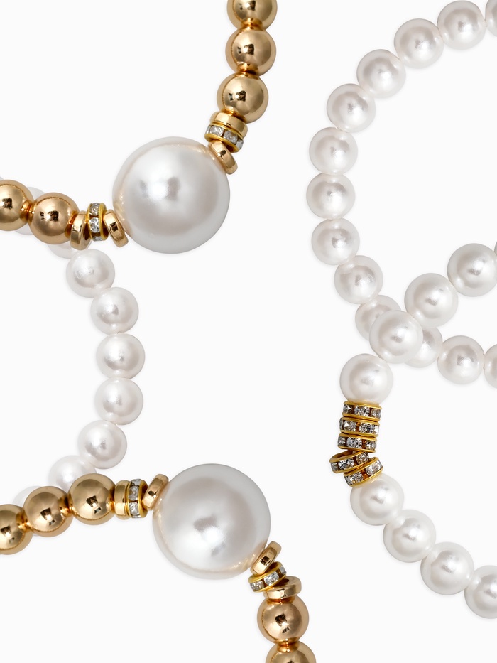 Набор из пяти изящных жемчужных браслетов украсит любую женскую руку. Мягко переливаясь белым оттенком с золотистым блеском, эта коллекция становится прекрасным решением для любительниц натуральных оттенков и классики.