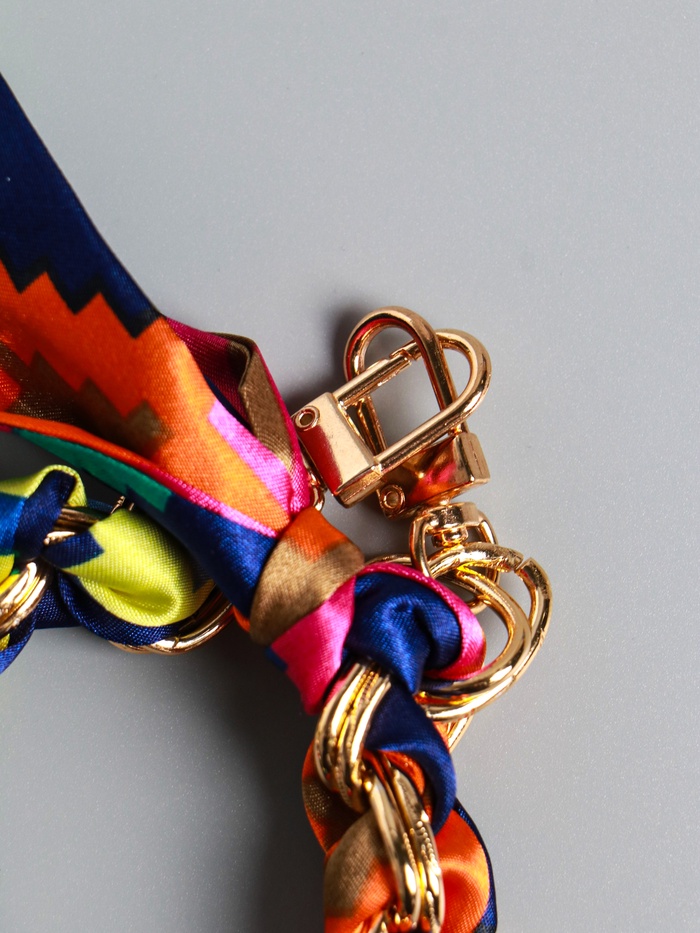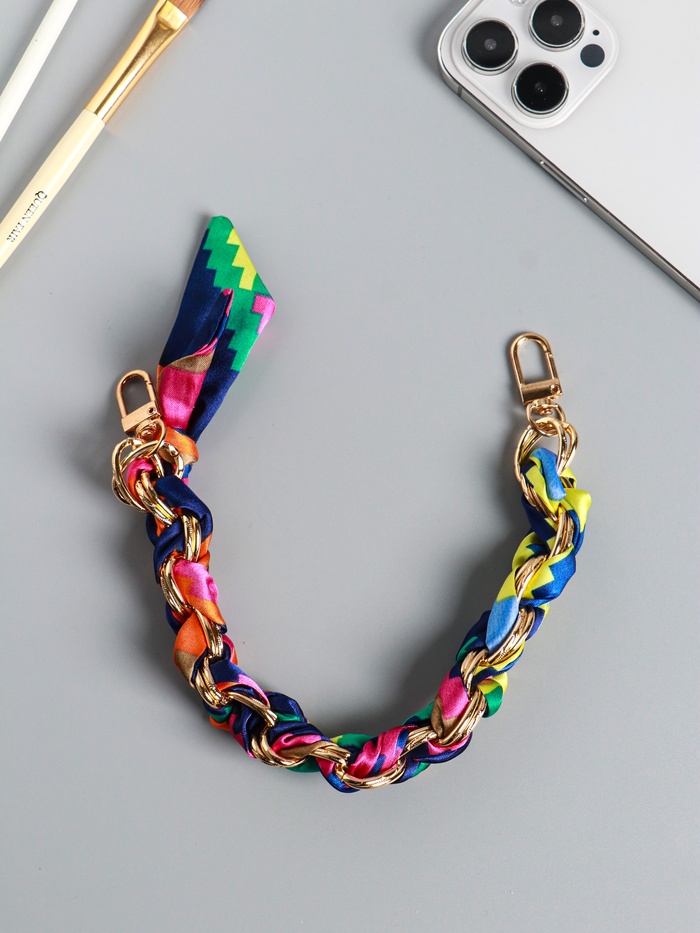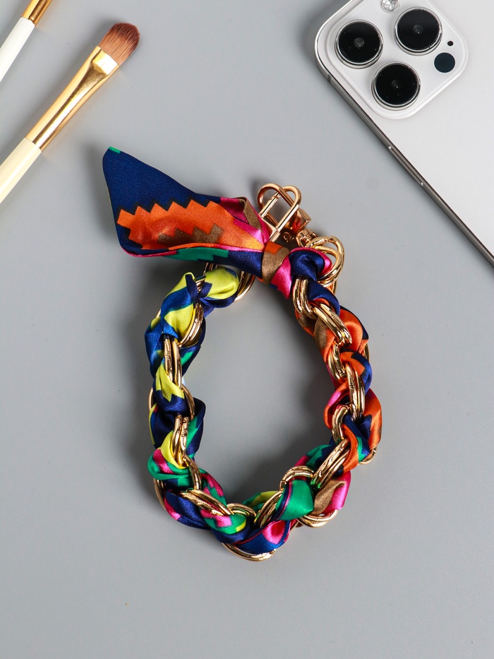 Этот двухкарабинный брелок — элегантный аксессуар для подарка на 8 Марта. Компактный и стильный, он сочетает нежность текстильного платочка с практичностью металлической цепочки.