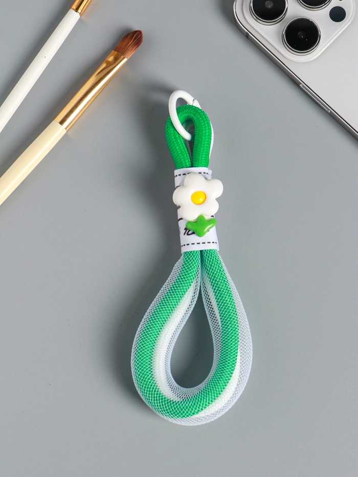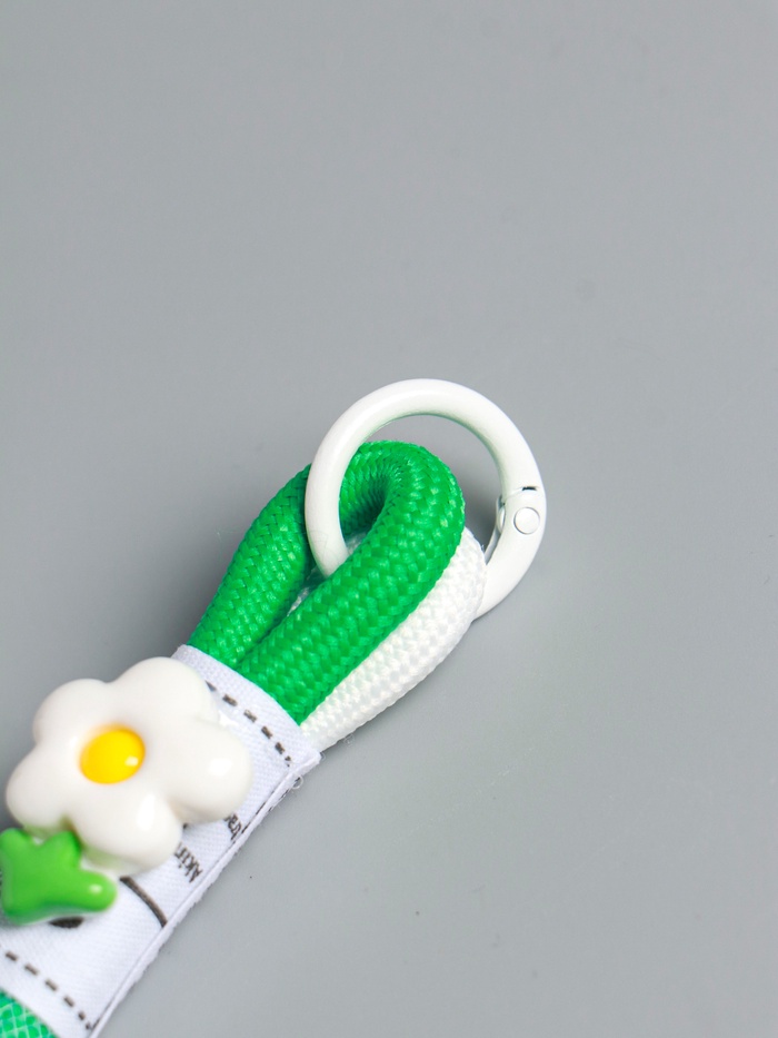 Брелок для ключей на карабине «Цветок. Шнур-сетка», двойной шнур 0.7 см, бело-зелёный, на сумку, рюкзак, 14.5×2×1.7 см