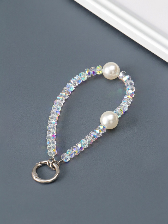 Брелок для ключей на карабине «Две нитки с жемчугом», бусины d=0.8 см и 1.6 см, 12.5×1.6 см