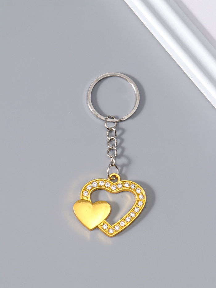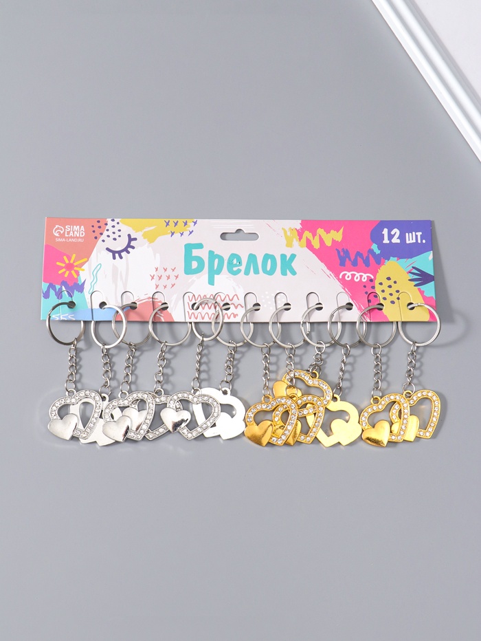 Брелок для ключей на кольце «Двойное сердце», металл, стразы, 3.3×3.7 см, МИКС