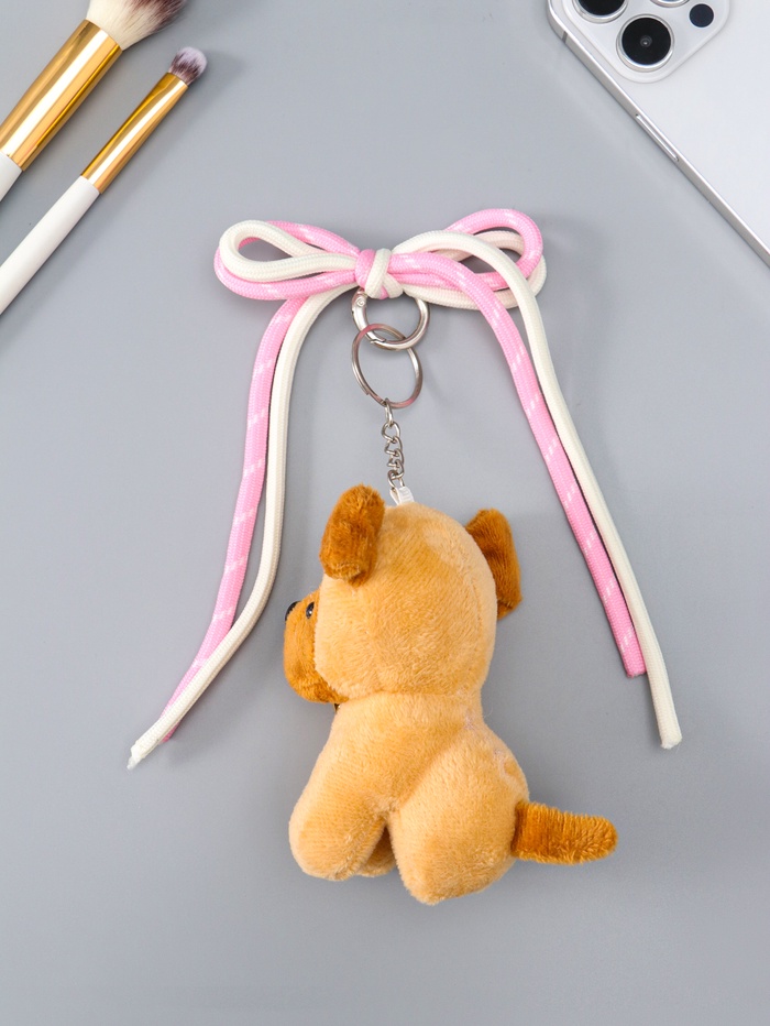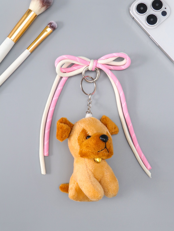 Брелок для ключей на кольце, карабине «Милый щенок с бело-розовым бантиком», на сумку, рюкзак, мягкий, коричневый 5×9.5×20 см