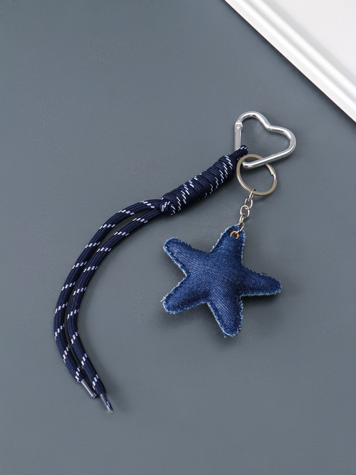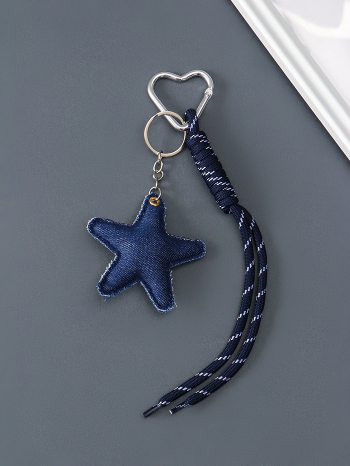 Брелок для ключей на кольце на карабине «Звезда», текстиль, джинс, с узлом, на сумку, рюкзак, 21×7.7×2 см