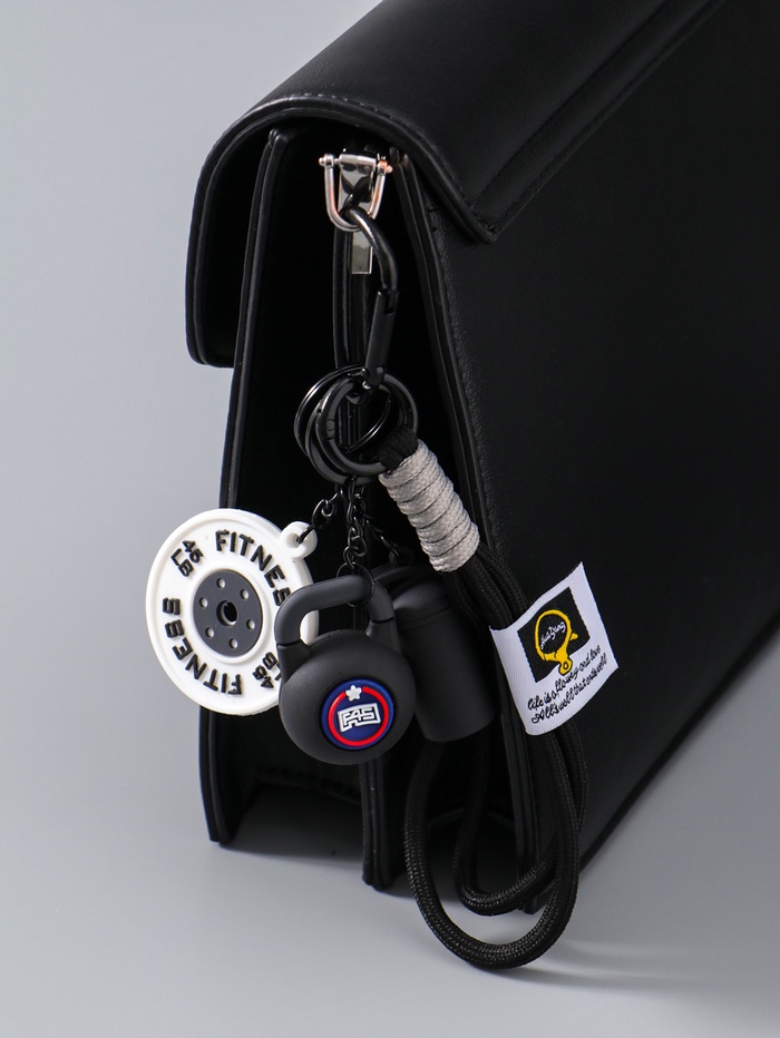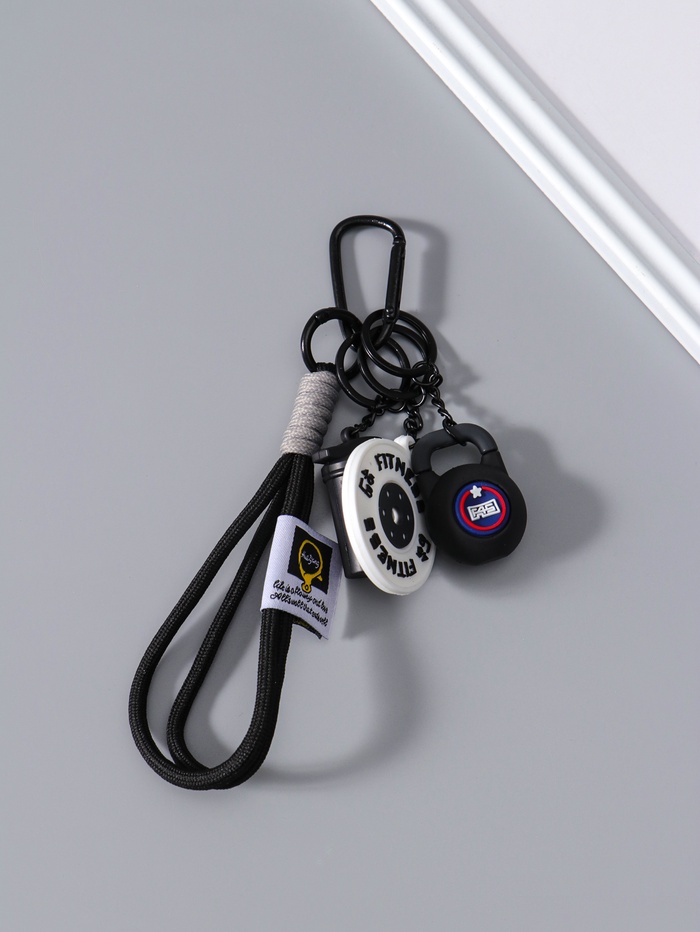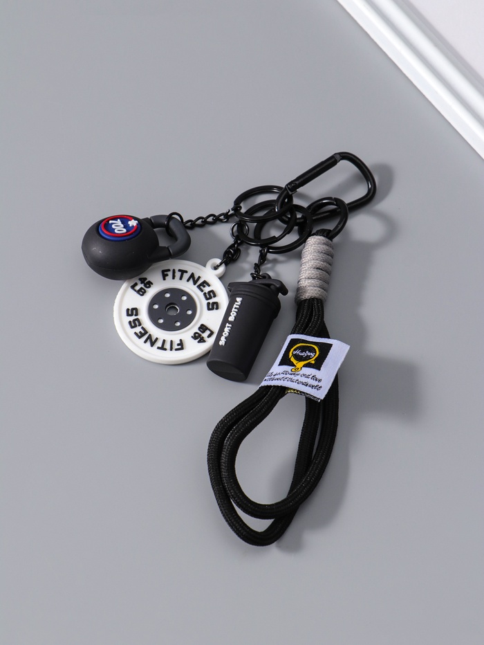 Брелок для ключей на кольце с карабином «Гиря, диск и бутылка», на рюкзак, сумку, чёрный, 13.5×4.5×2.2 см
