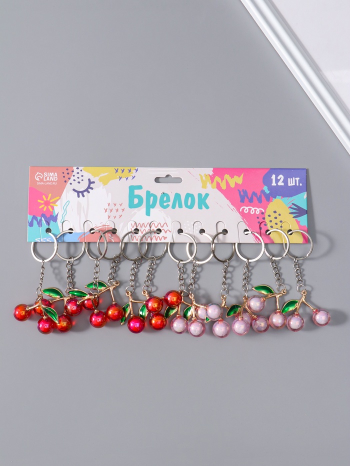 Брелок для ключей на кольце «Вишенки с листьями», пластик, 4×4×1.5 см, МИКС
