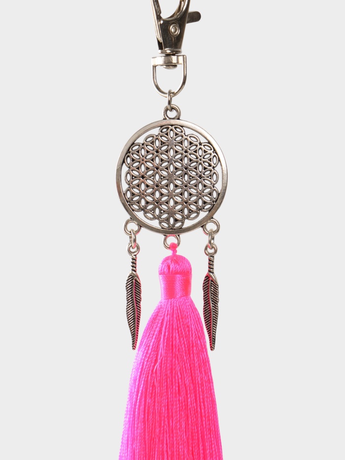 Брелок-кисточка "Ловец снов" 17 см, цв. розовый, серебристый
