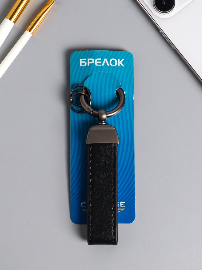 Брелок кожзам, металл "Ремешок" чёрный матовый 12,2х2,3х0,7 см