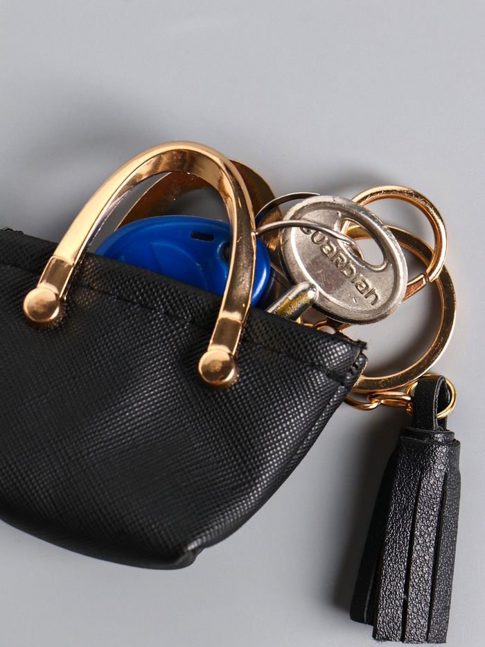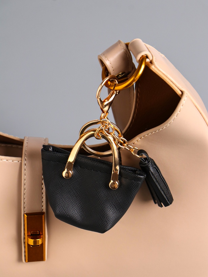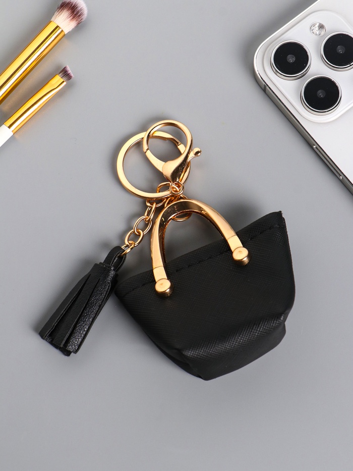Брелок кожзам с карабином, с кистью "Сумка тоут" чёрная 6,5х3х7 см
