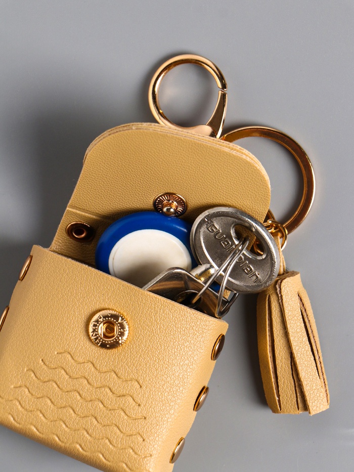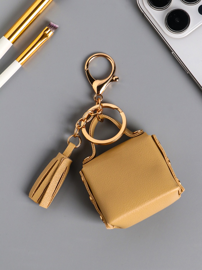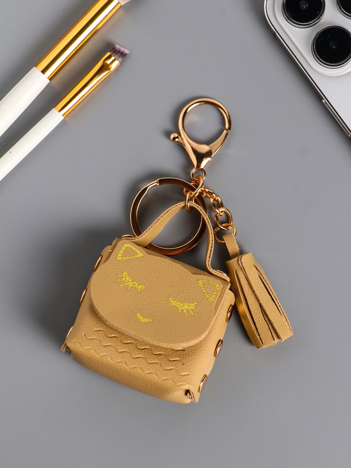 Брелок кожзам с карабином, с кистью "Сумочка. Котик" сливочный 5х2,5х6 см