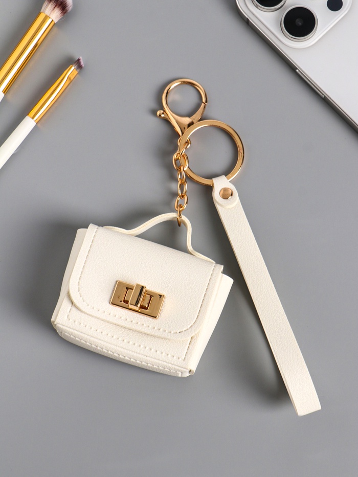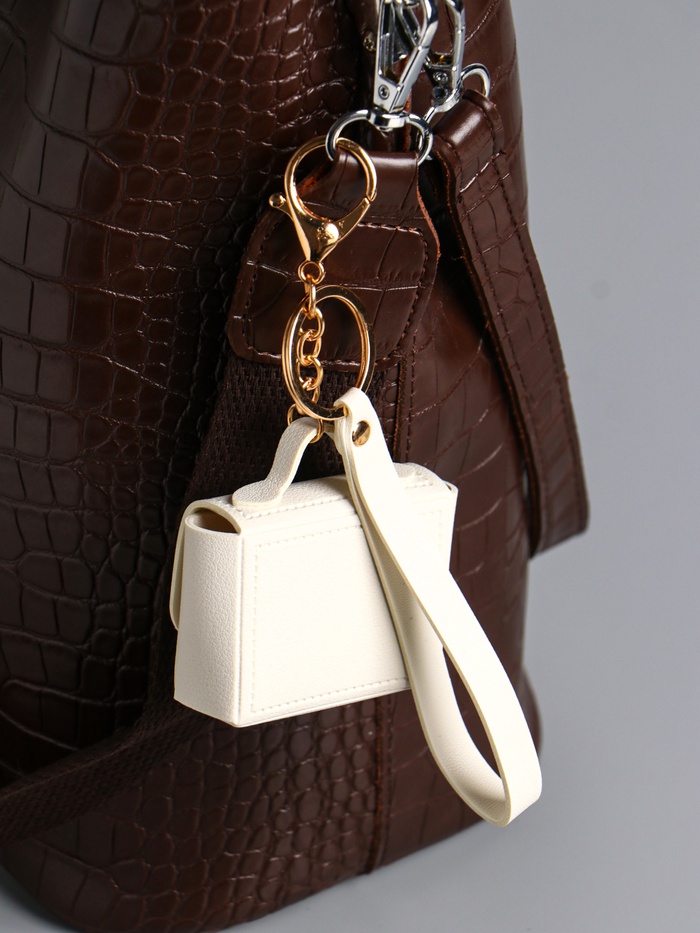 Брелок кожзам с карабином, с ремешком "Сумочка" белоснежный 6,2х2,5х7 см