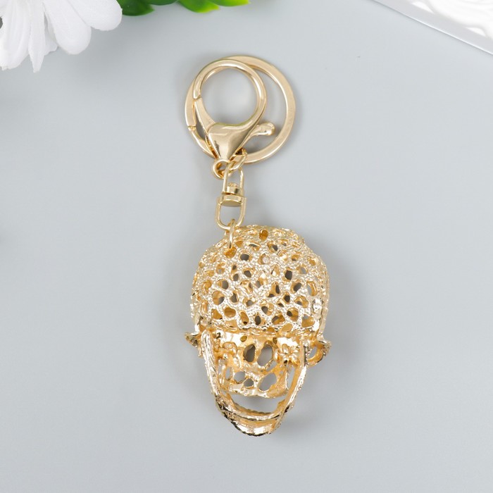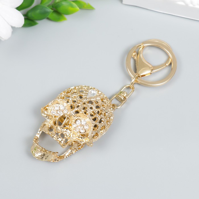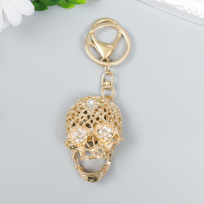 Брелок металл с карабином, эмаль, стразы "Ажурный череп" 11,6х3,7 см