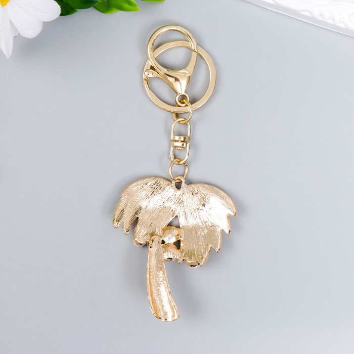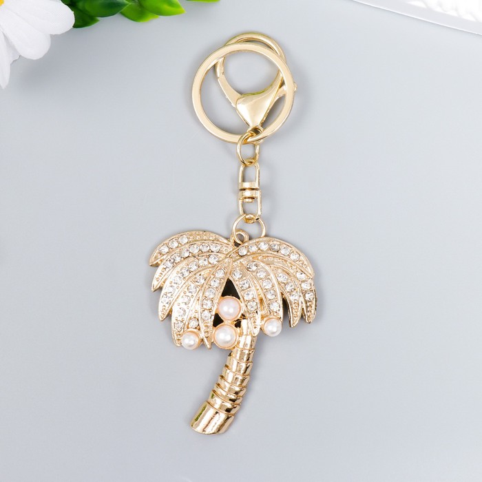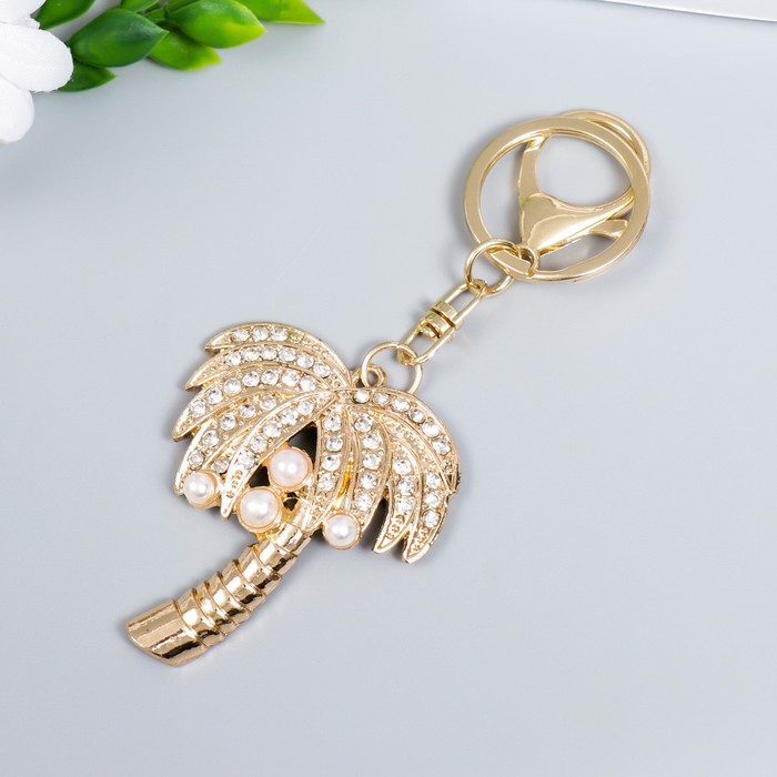 Брелок металл с карабином, эмаль, стразы "Пальма с жемчугом" 13х4,4 см