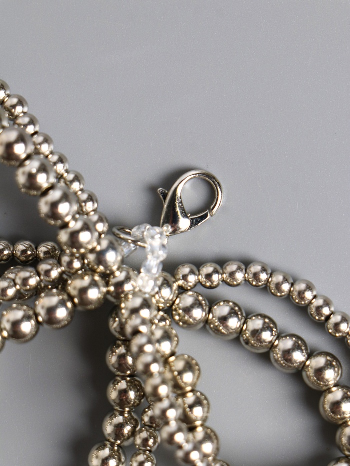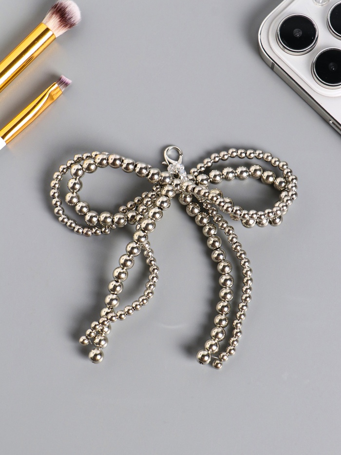 Брелок на карабине "Двойной бант" серебро, бусины d=0,4 и 0,5 см 11,5х9,5х1 см
