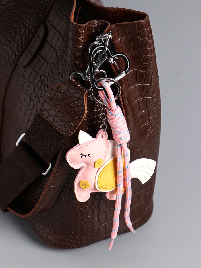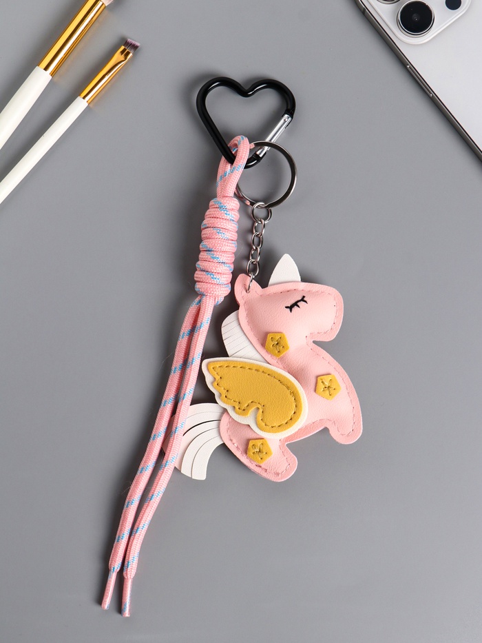 Брелок на карабине кожзам, текстиль "Единорог с крыльями" розовый, с узлом 24х10,5х1,5 см