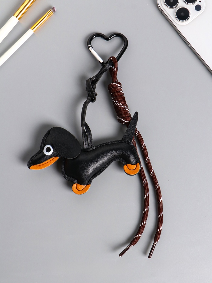 Брелок на карабине кожзам, текстиль "Такса" с узлом 25х13х1,5