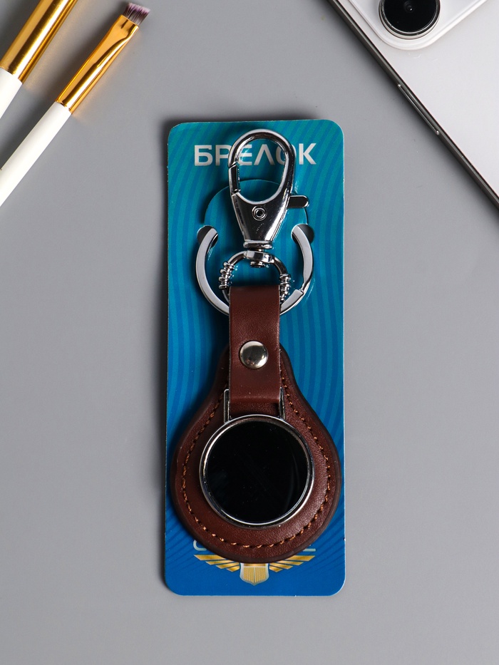 Брелок под нанесение кожзам, металл "Жетон" размер окна d=2,7 см, коричневый 11х4,5х0,7 см 1090438