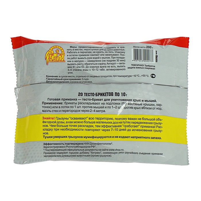 Готовая приманка для уничтожения крыс и мышей. Препарат настолько привлекателен для грызунов своим запахом и вкусом, что они охотно поедают его даже при наличии другой пищи.