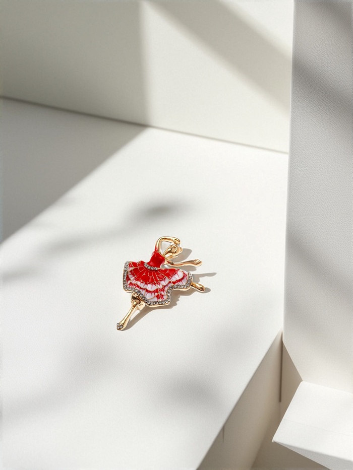 Восхитительная брошь в образе балерины в пышном красно-белом платье объединяет изящество классического балета и современную элегантность. Размер 5 см делает украшение заметным, но при этом лёгким и удобным для ежедневного ношения или особых случаев, таких как праздник 8 Марта.