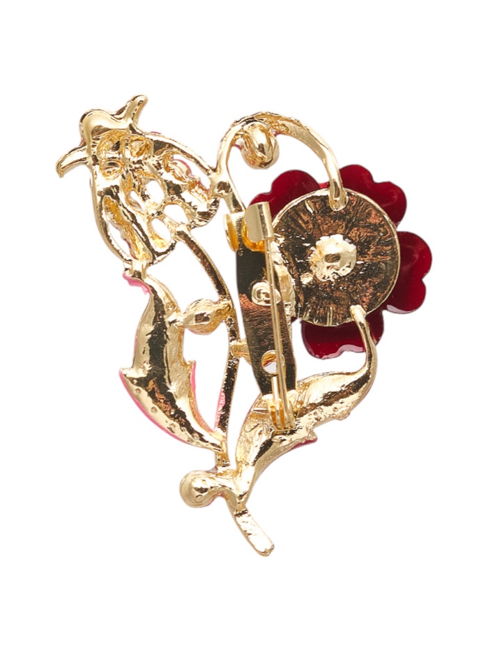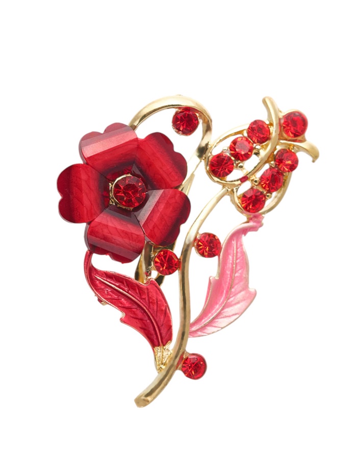 Яркая и эффектная брошь с цветочным дизайном в красном цвете, обрамлённая золотой фурнитурой, станет настоящим акцентом вашего образа. Это украшение не только поднимет настроение, но и подчеркнёт вашу индивидуальность, добавив нотку элегантности и стиля в любой наряд.