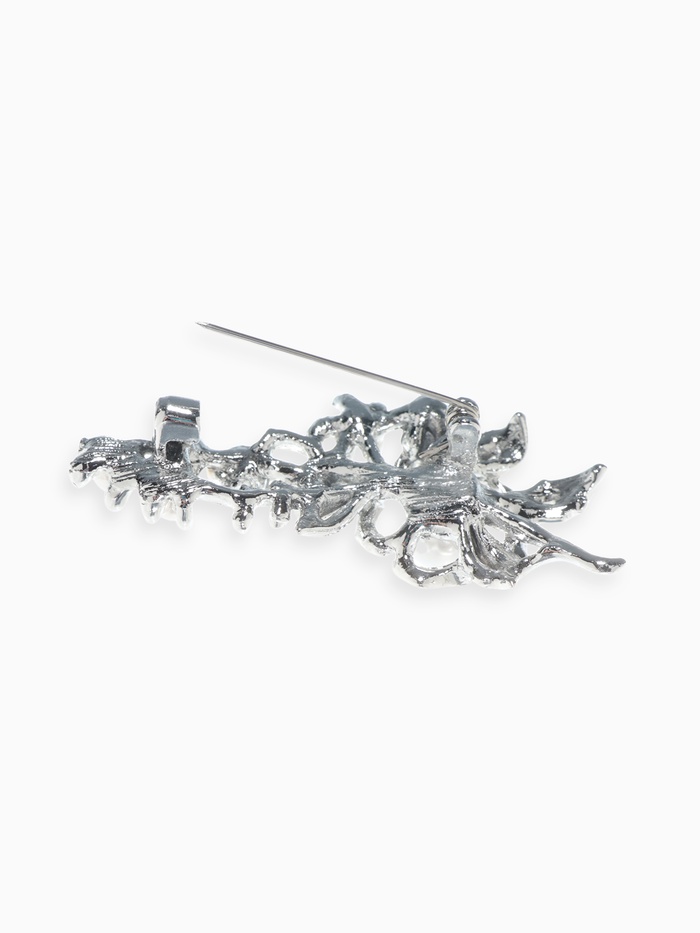 - Элегантные вставки: искусственный жемчуг и пластик придают броши лёгкость и благородный блеск.