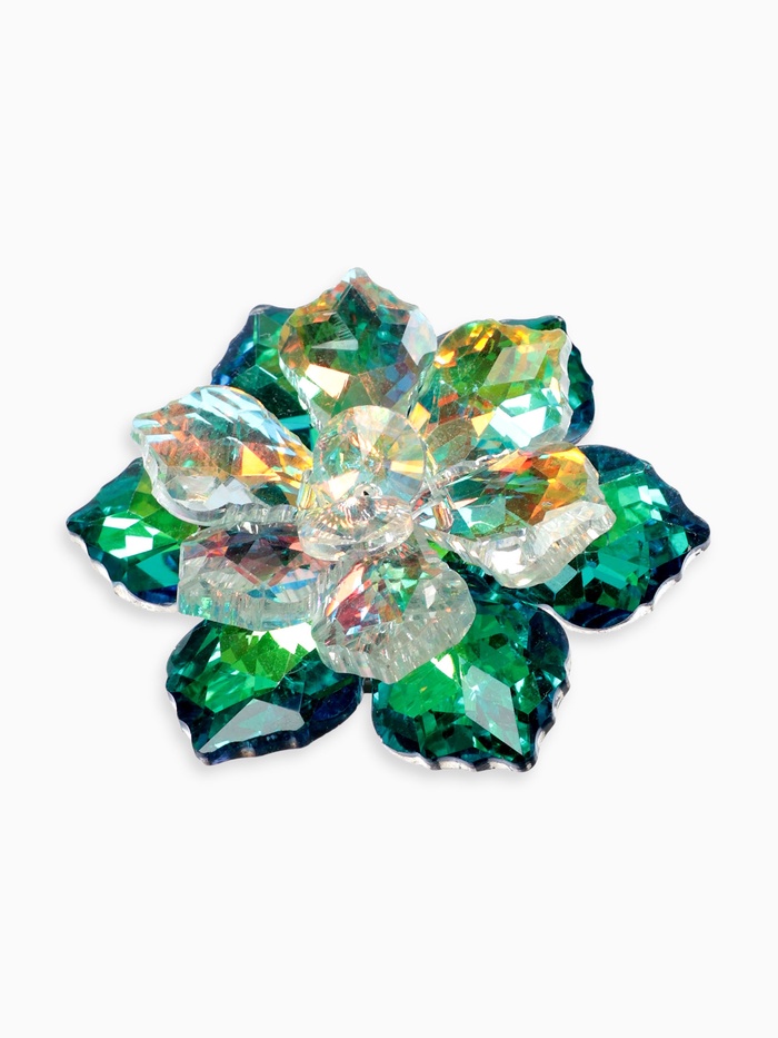 Погрузитесь в мир волшебства и красоты с этой удивительной брошью в форме цветка, которая станет ярким акцентом вашего образа. Сочетание радужно-зелёных оттенков и серебряной фурнитуры придаёт ей неповторимый шарм, делая её идеальным аксессуаром для любой женщины.