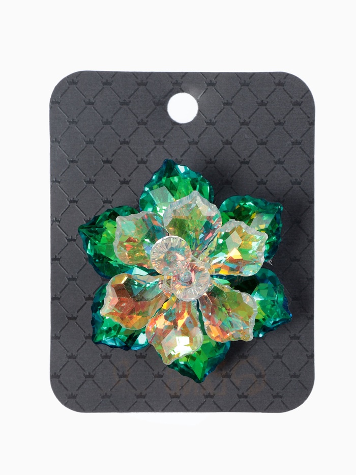 - Элегантный дизайн: цветок с изысканными деталями и яркими полистоун вставками привлекает внимание и подчеркивает вашу индивидуальность.